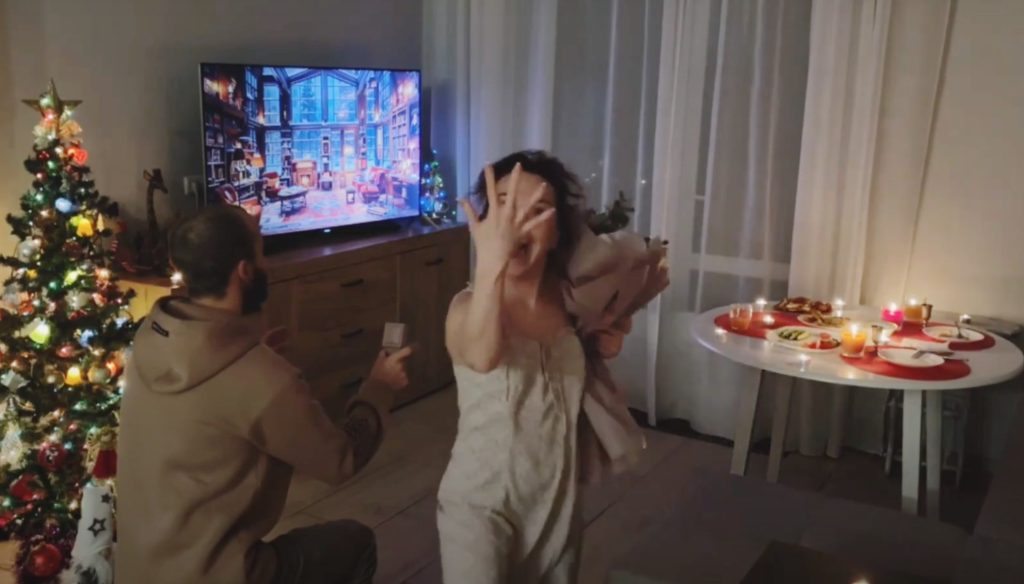 Сама ж пропозиція руки та серця від Поповича прозвучала в інтимній атмосфері у них удома. На Вікторію чекали свічки та букет квітів, а Кирило, опустившись на одне коліно, запропонував їй стати його дружиною.